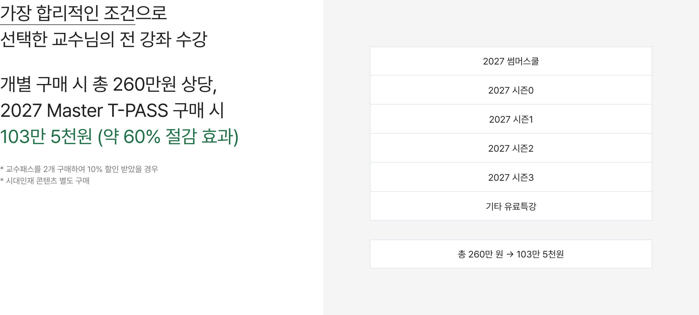 * 추후 오픈하는 PSAT 강좌 및 오프라인 단독 특강의 경우 조정환 교수패스에 포함되지 않습니다. (기존 정규강에서도 PSAT강의를 진행합니다.)